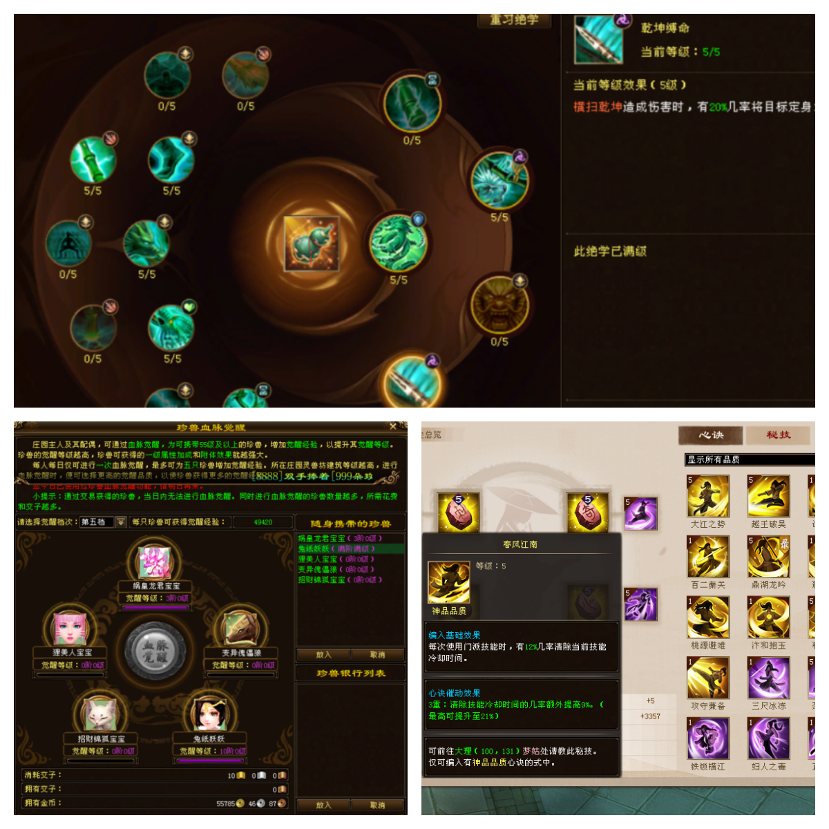 【四绝】:元宝票2-5万,通天功力丹,金蚕丝礼盒,精金石,金蚕丝,赤血情义丹,上古神兽残页,上古玉佩,充值点